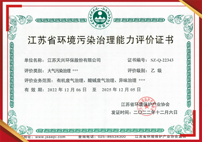 江蘇省環(huán)境污染治理工程設(shè)計能力評價證書